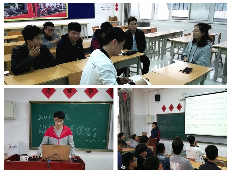 4月12日下午,轨道工程系在高新校区GB416教室举办了班级诊改报告会,2016级辅导员刘凯老师,李可嘉老师以及大一各班学生代表参加了此次报告会,2016级各班班长向老师及同学们汇报了各班班级诊改情况。