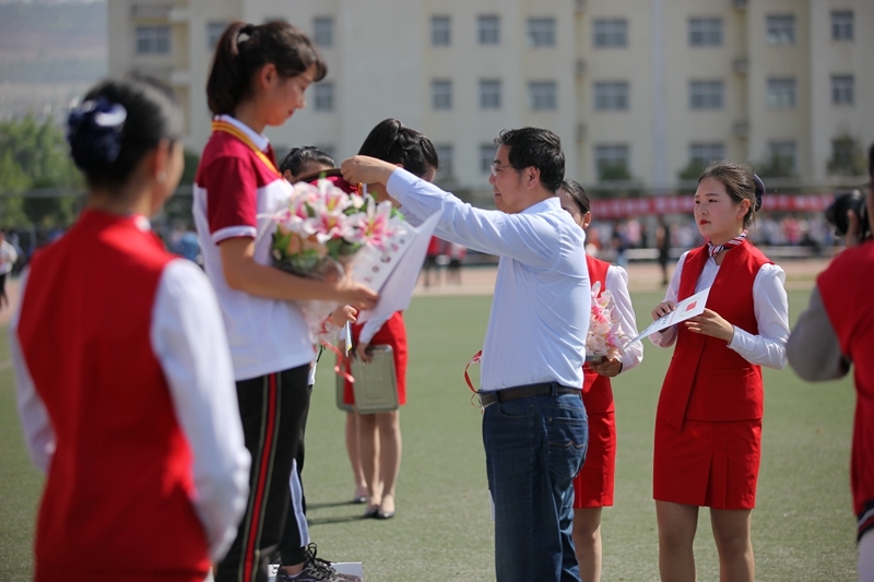 王晖及相关部门负责人为临渭校区获奖运动员颁奖并合影