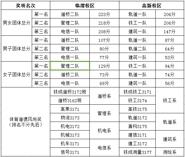 临渭、高新两校区体育道德风尚奖