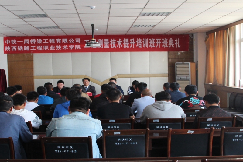 4月18日上午,中铁一局集团桥梁工程有限公司工程测量技术提升培训班开班典礼在学院临渭校区12楼会议室举行。学院副院长王闯,中铁一局桥梁公司工会主席杜芳栋、人力资源部部长崔晓强出席典礼。