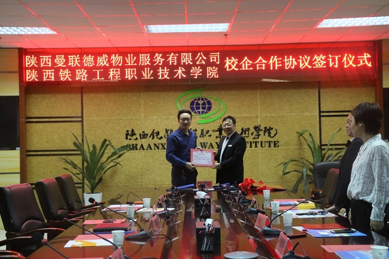 随后,校企双方进行了校外实训基地授牌活动,完成了《陕铁院与陕西曼联德威物业有限公司校企合作协议》和《校企合作校外实习协议书》等协议的签订,并聘请陕西曼联德威物业有限公司副总经理王国成、幸福城物业经理魏鹏伟担任给排水技术专业校外兼职教师,并颁发聘书。