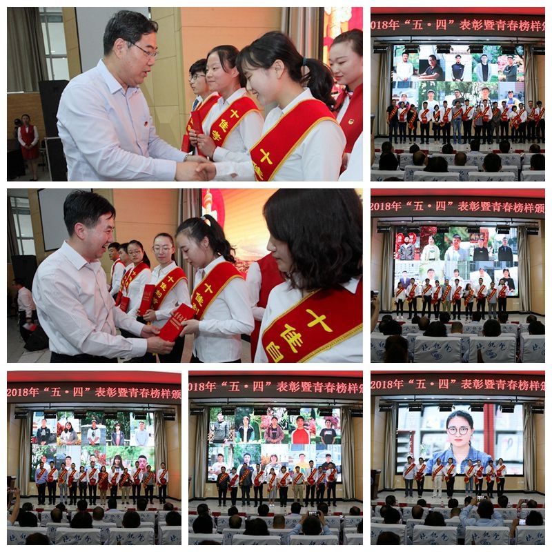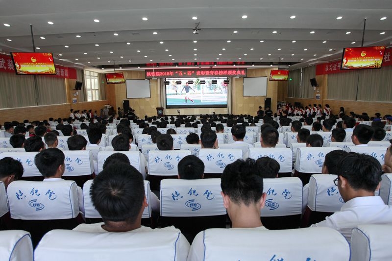 5月3日,学院2018年“汇聚青春梦想,彰显榜样力量”五四表彰暨青春榜样颁奖典礼在高新校区博爱厅举行,临渭校区学术报告厅进行实时现场直播。陕西省高教团工委书记刘万斌、共青团渭南市委副书记张晓锋、共青团渭南市委宣传部长张峰、中铁北京局集团有限公司人力资源部副部长周翔,学院党委书记王晖、院长王津、党委副书记车绪武、副院长王闯等领导出席会议。2017年度“五类十佳”青春榜样学生家长、学院各部门、各系部师生代表共900余人参加了会议。团委副书记侯峰、团委教师杨旭担任主持人。