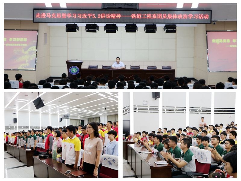 5月3日晚,铁道工程系党总支组织广大青年集会,开展以“走近马克思·学习新思想”为主题的集体政治学习活动。现场共三百余名师生聆听报告,活动由学工办主任王海燕主持。