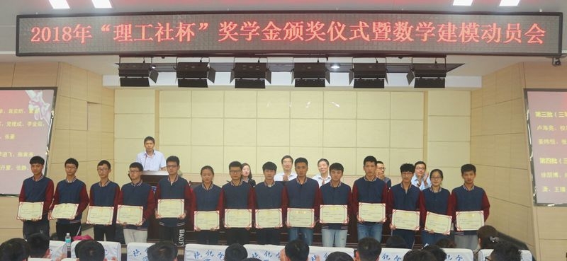颁奖仪式上,教务处处长蒋平江宣读获奖名单,与会领导与嘉宾为获奖学生颁发获奖证书。40名在全国大学生数学建模竞赛、美国大学生数学建模竞赛、英语技能大赛、英语口语大赛获奖的学院学子荣获“理工社杯”奖学金。