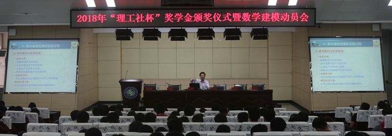 5月7日下午,2018年“理工社杯”奖学金颁奖仪式暨数学建模动员会在学院高新校区举行,副院长焦胜军,陕西科技大学蔺小林教授,北京理工大学出版社陕西分社高锦社长,教务处、学生处处长,竞赛指导教师、获奖学生及近300名数学建模爱好者参加了此次活动。
