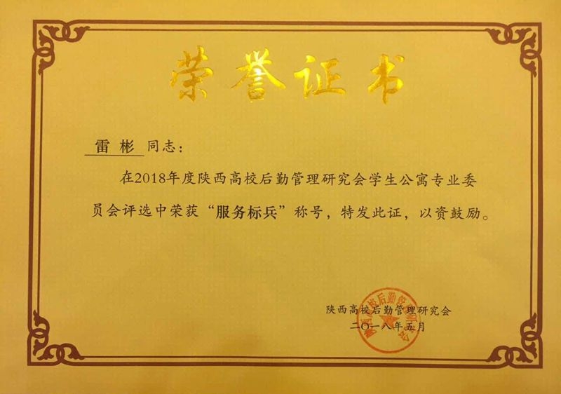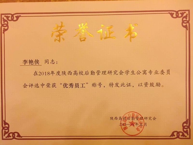 5月11日,2018年陕西省高校学生公寓专业委员会年会在商洛召开,会上对在高校公寓表现优秀的先进个人进行表彰,学院学生处雷彬荣获陕西高校学生公寓管理“服务标兵”、李艳侠荣获陕西高校学生公寓管理“优秀员工”荣誉称号。