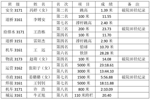 5月12日至15日,由陕西省教育厅主办,陕西省学生体育协会、西安体育学院承办的陕西省第四十届大学生田径运动会在西安举行,来自全省76所院校85支代表队的近1800人参加3个组别的比赛。学院运动健儿在比赛中顽强拼搏、奋勇争先,在比赛中充分展示了学院学生的良好精神面貌和体育精神,获得两枚银牌、一枚铜牌,并打破4项学院田径纪录。其中,赵萌同学打破了尘封28年的女子100米院纪录。(王宏)