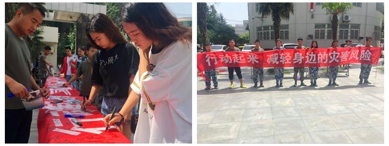 ——悬挂主题横幅进行百人签字活动。5月12日上午,学院举办“行动起来,减轻身边的灾害风险”百人签名活动。活动现场,通过在醒目位置设立宣传展板、设立咨询台、发放《防震减灾知识读本》、讲解防灾减灾知识、主题横幅签字等多种形式,向师生普及防震减灾等知识,动员师生关注身边的各类灾害风险,提高防灾减灾意识。