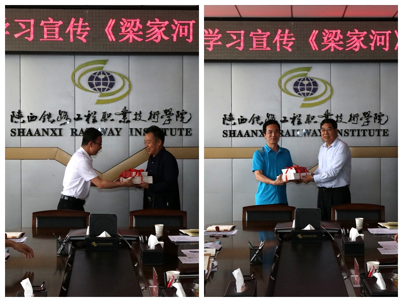 许文学与党委书记王晖分别向学院党团组织代表发放《梁家河》书籍