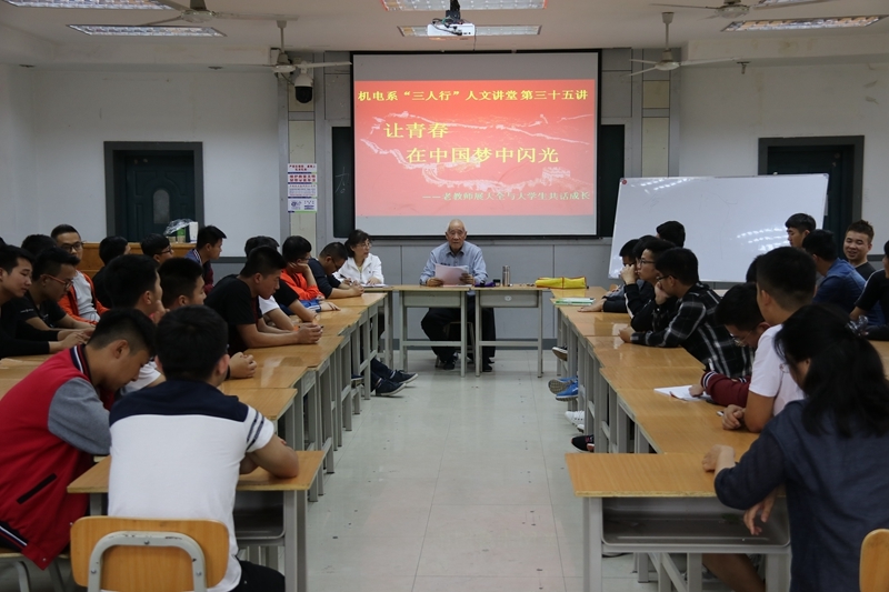 为充分挖掘离退休教师的教育资源,将他们的学术成果、人生故事、人生经历、人生感悟作为学院关工委工作的切入点,以社会主义核心价值观引领青年师生发展。5月23日下午,学院关工委联合机电工程系,以“让青春在中国梦中闪光”为主题,特邀退休教师展大全在临渭校区与师生共话人生,开展了一场别开生面的红色教育活动。活动由机电工程系书记刘艳明主持。