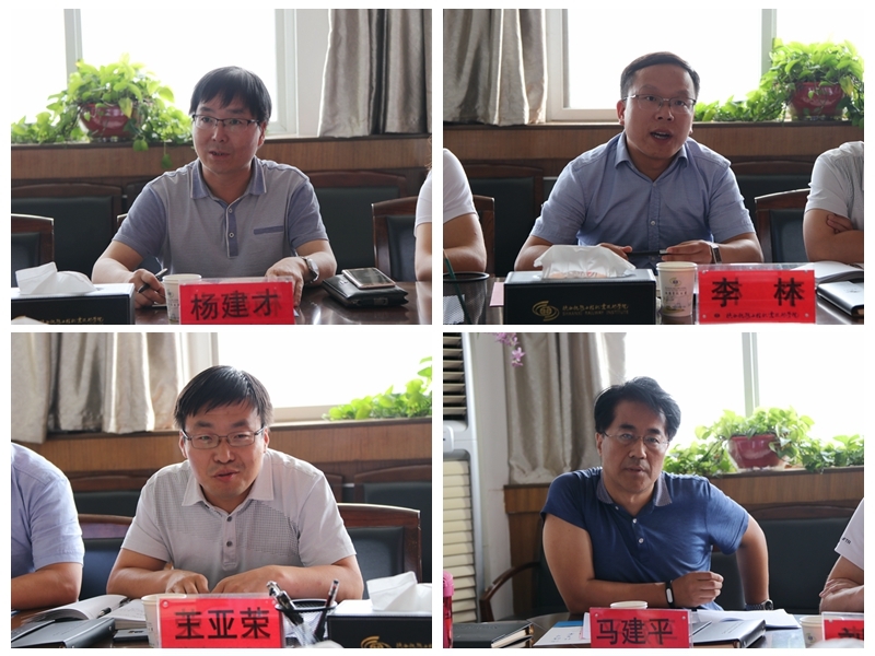 龚贵林、樊兴华、任佳迪三位教师分别就挂职临渭区交通局和团委的工作情况进行了汇报。临渭区各参会单位的负责人在发言中,对学院给予单位的帮扶工作表示感谢,对挂职教师的工作给予赞赏,并根据各自单位的工作性质对帮扶内容和形式提出了建议。杨建才在发言中说,学院的帮扶实施方案内容详实,帮扶工作成绩显著,希望学院继续发挥优势,助力交通局在建项目的技术工作;李林介绍了临渭区团委帮扶工作,表示将与学院加强联系,开展形式多样的志愿者活动,加大社会服务力度;王亚荣对学院开展的帮扶工作表示感谢,希望下一步能够和学院在产学研方面开展紧密深入的合作;马建平表示,学院前期开展的科技培训卓有成效,希望学院能够继续开展知识产权保护、专利保护、科研立项申报等方面的培训。