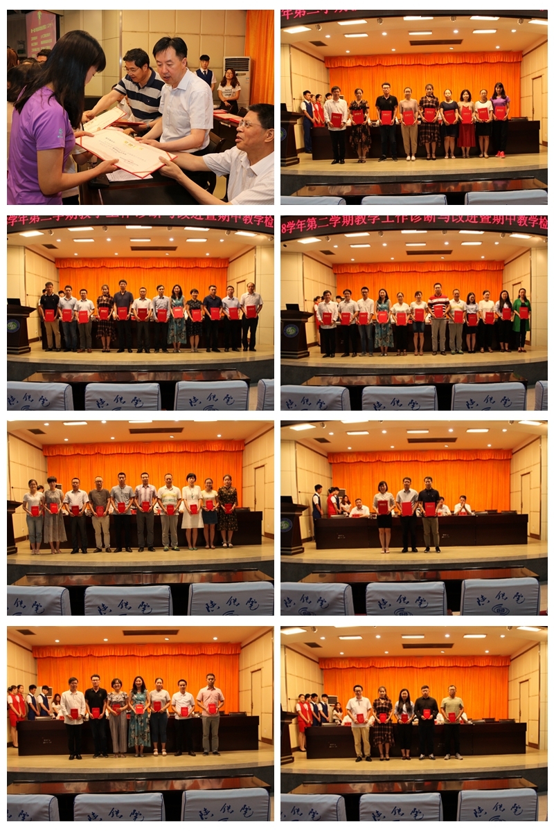 王闯宣读了《关于表彰学院2017-2018学年第一学期教学诊断与改进暨期中教学检查优秀项目的决定》,与会领导分别为优秀部门和个人颁奖。