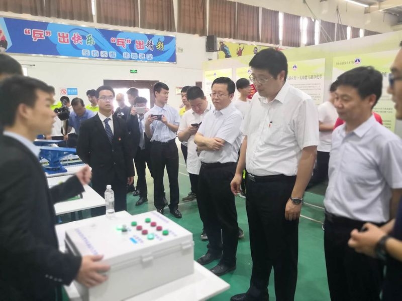 学生团队向领导专家介绍获奖作品——隧道空气质量智能检测控制系统