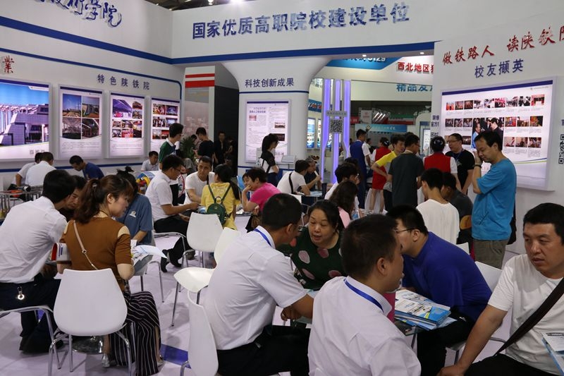此次博览会为期4天,学院展区位于B1展馆,展区以蓝白色为主色调,蓝色是中国高铁标志颜色,重点体现中国高铁“走向国际”这一主题,展区内吸引了不少来自省内外考生和家长关注,专业咨询团队一对一为广大考生和家长解答有关志愿填报的各种问题,现场气氛热烈。