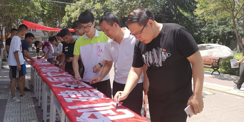 学院副院长王闯在横幅上签名