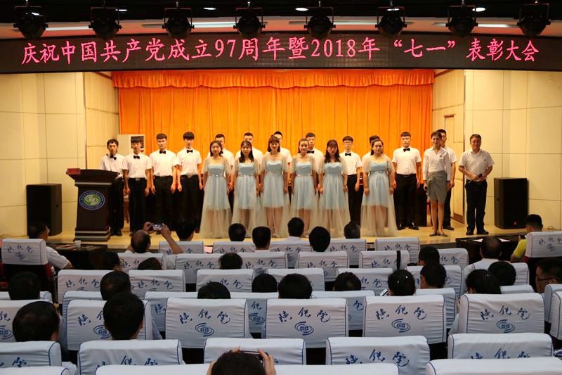 最后,在国际歌声中,学院庆祝中国共产党成立97周年暨2018年“七一”表彰大会圆满结束。(欧阳莎/文 学生记者 吴欣然 史兴/图)