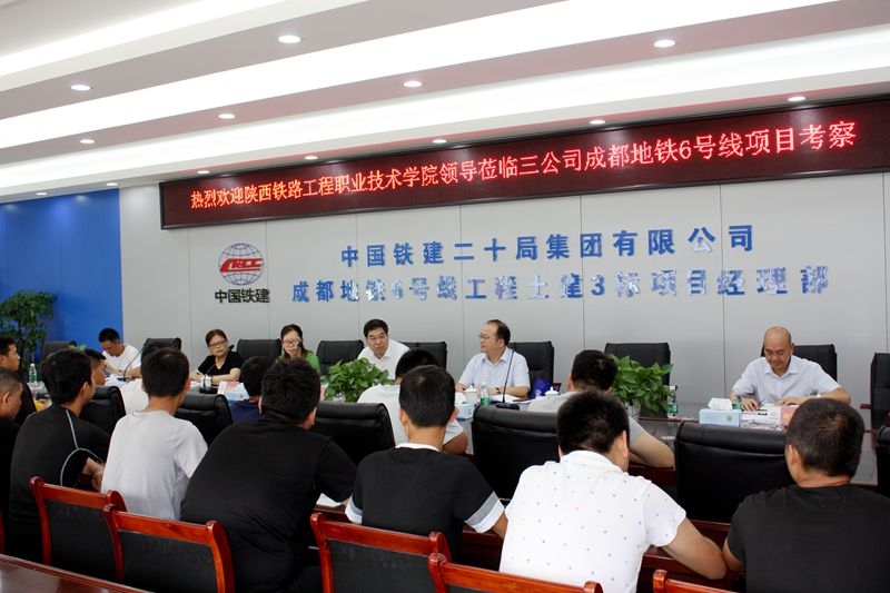 7月15日至17日,学院党委书记王晖、副院长王闯,校企合作处、党委办公室负责人一行四人先后到中铁一局四公司成都片区指挥部、中铁二十局三公司成都地铁6号线项目部、中铁二十三局、中铁一局成都博览城综合交通枢纽项目部、中铁八局城轨公司、成都铁路局等企业调研。