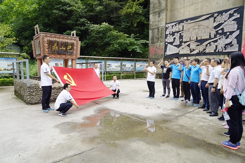 来到工区,在劳模王庭虎陪同下,党员们走上黑水河铁桥体验巴山人工作的环境,感受工作的艰辛。王廷虎同志还与相关老师进行了业务交流,让老师们在真实的工作环境中增见识,长才干。在巴山鼎广场,全体党员进行了宣誓,并重温了入党誓词。