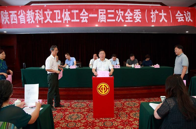 按照省总工会《关于做好陕西省工会第十四次代表大会组织人事工作的通知》要求,省教科文卫体工会于7月23—24日在西安召开一届三次常委会议与全委(扩大)会议,大会选举产生了21位全省教科文卫体系统出席陕西省工会十四大的代表。学院党委副书记、纪委书记、工会主席杨云峰参加了会议,并以高票当选。