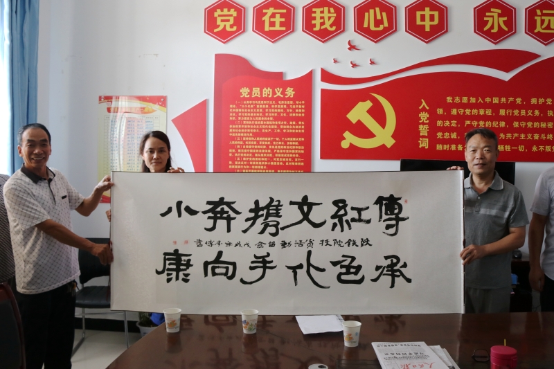 车绪武代表学院向寺峪口村赠送“传承红色文化,携手奔向小康”书法字画