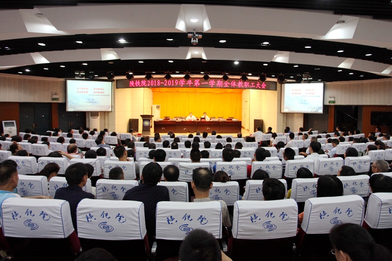 9月2日上午,学院在临渭校区学术报告厅召开2018-2019学年第一学期全体教职工大会。学院党委书记王晖,院长王津,党委副书记车绪武,党委副书记、纪委书记杨云峰,副院长王闯、焦胜军、李林军出席会议,全院教职工参加了大会。