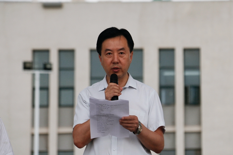 升旗仪式结束后,王晖、王津分别在两校区作了讲话,他们代表学院对顺利返校的学生表示了欢迎,为全体参加人员上了生动的“开学第一课”。
