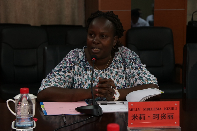 肯尼亚铁路培训学院校长米莉·珂资丽表达了对学院的感谢,她表示非常开心来到中国、来到陕西,非常喜欢中国的文化和美食,并对学院的办学成就给予高度肯定。她讲到,在这几天访问交谈中,听取了学院专业建设汇报和参观校园后感到非常的震撼,教师努力奋进和拼搏向上精神都是非常棒的,同时也感谢学院教师对肯尼亚在铁路方面的技术培训以及经验分享。期待两校的合作,希望能有机会再次来到陕铁院。