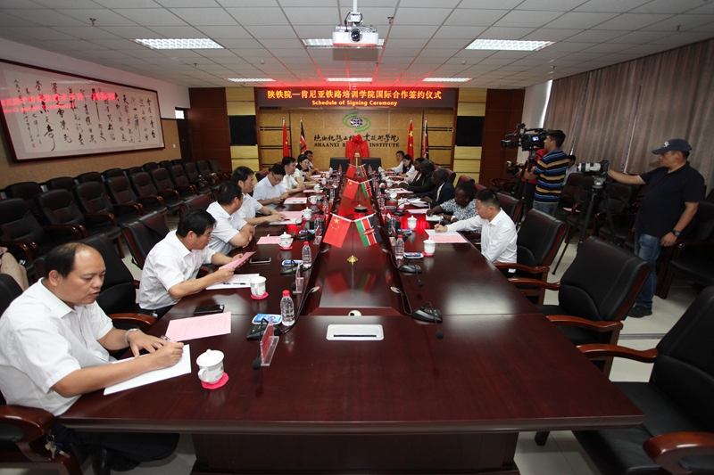 9月12日,陕铁院-肯尼亚铁路培训学院国际合作签约仪式以及肯尼亚铁路培训学院实践教学基地揭牌仪式在学院高新校区行政楼会议室举行。省教育厅国际交流处副处长文通出席仪式,学院院长王津,副院长王闯、李林军以及相关职能部门负责人参加了仪式。仪式由王闯主持。