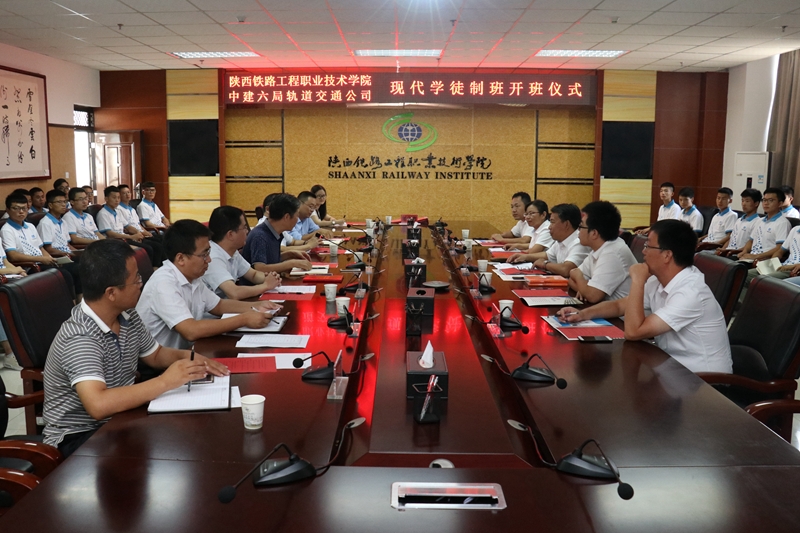 中建六局轨道公司副总经理程志强、盾构设备管理部经理刘文栋、人力资源部经理李会雅、西安地铁十四号线项目经理贺应龙、西安地下综合管廊项目经理邵武涛,学院副院长焦胜军,校企合作处、教务处、轨道系负责人及订单班班主任出席开班仪式。轨道系党总支书记主持开班仪式。