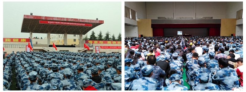 为深入贯彻落实“消防知识进军训”工作方案,进一步提高学生的消防安全意识和自防自救能力,全力防范校园火灾事故的发生,9月17日和18日,学院联合辖区消防大队开展“消防知识进军训”活动,为五千余名新生上了一堂生动的消防安全教育课,取得了良好的效果,受到师生们的热烈欢迎。