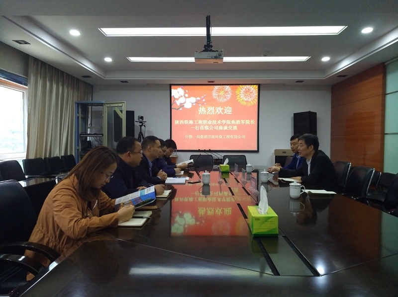 9月18日上午,在中铁一局集团市政环保工程有限公司四楼会议室,焦胜军一行与公司副总经理郭继财,人力资源部、技术部、企划部等相关部门负责人进行座谈。座谈会上焦胜军从招生就业、新校区建设、人才培养质量、BIM应用技术、校园文化建设和全国高职院校发展情况等方面向企业作了介绍,郭继财则介绍了近年来公司由传统的铁路、市政建设发展为以供水、管网工程为主业的专业化转型升级,水务集团筹备情况,并表达了希望与学院进行多方位的创新合作。经过交流,双方就下一步BIM等应用技术合作达成初步意向。