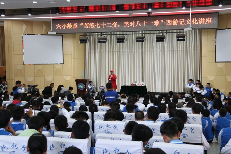 10月25日下午,学院45周年校庆系列活动之六小龄童(章金莱)“苦练七十二变,笑对八十一难”西游记文化讲座在学院高新校区博爱厅举行。学院邀请到全国著名表演艺术家“六小龄童”章金莱先生,为师生讲述《西游记》的“取经”之旅,感受西游文化魅力、畅谈智慧人生。学院党委书记王晖、党委副书记车绪武、副院长焦胜军、副院长李林军等,同千余名师生一睹“美猴王”风采。