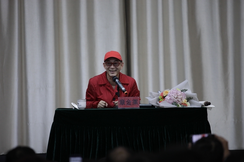 讲座中,章金莱回顾了自己祖辈与猴戏的渊源,讲述了在《西游记》长达17年的拍摄过程及其中的苦难与坚守,用“忠于原著,慎于翻新”的艺术态度,结合亲身经历,讲述了自己勇攀艺术巅峰、坚守文艺底线、弘扬传统文化、坚定文化自信的艺术人生。同时还把影视文艺创作和学院专业技术学习相结合,鼓励青年学子要有朝气、有梦想,要以积极乐观的态度面对人生的种种坎坷,去克服人生“取经”道路上的种种艰难险阻。