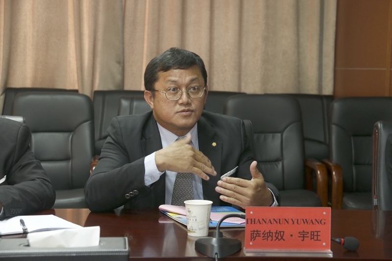 泰国东北皇家理工大学校长助理萨纳奴·宇旺介绍了泰国皇家理工大学的基本情况,并详细了解学院铁路专业方面设置。期望双方能够在学术交流、学生培养、教师互访等方面开展深入合作。