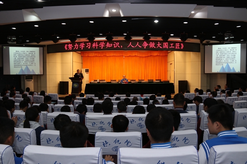 在临渭校区报告厅,窦铁成为铁道供电技术专业学生作了《努力学习科学知识 人人争做大国工匠》的报告。他为大家讲述了如何成长一名“金牌工人”和全国劳模的实践经历,其语重心长、深入浅出的讲述赢得了学生们的阵阵掌声。