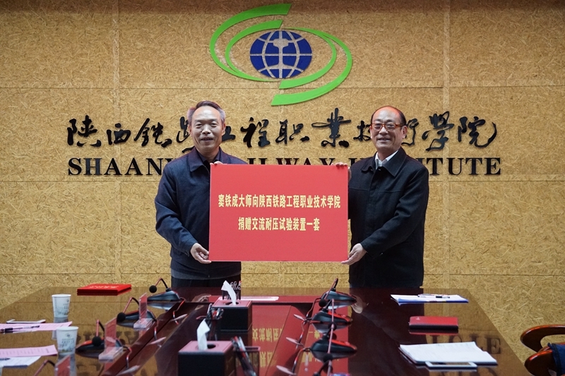 在“校友窦铁成捐赠暨青年教师拜师仪式”座谈会上,学院党委副书记车绪武教授向窦铁成介绍了近年来的学院发展、学生就业等情况。接着,窦铁成以个人名义向学院捐赠了一套交流耐压试验装置,旨在让学生加强理论学习的同时,更加注重实践经验的积淀,为早日成为新时代大国工匠打好基础。会议最后,举行了铁道供电技术专业青年教师拜师仪式。截至今日,窦铁成在学院总计收徒6名,为学院铁道供电专业的长远发展和铁成精神的发扬光大提供了人才支撑。