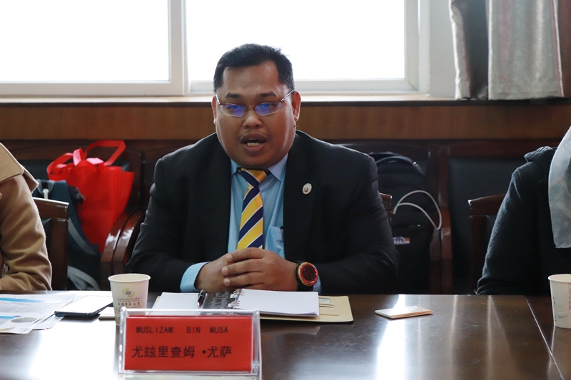 马来西亚吉隆坡建设大学亚洲铁路中心首席专家尤玆里查姆•尤萨介绍了吉隆坡建设大学的基本情况,并详细了解了学院铁路专业方面的课程与师资,期望双方能够在学术交流、人才培养、师生互访、合作办学等方面开展深入合作。