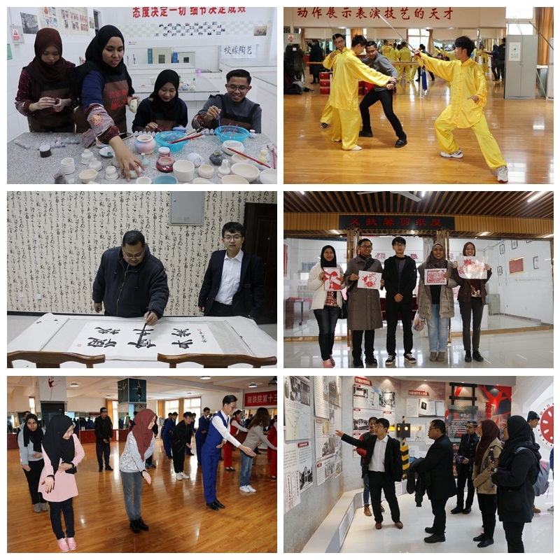 11月5日,正值学院喜迎四十五周年校庆之际,马来西亚吉隆坡建设大学亚洲铁路中心首席专家尤玆里查姆•尤萨先生带领四名学生来院访问交流。访问期间,马来西亚吉隆坡师生代表团参观实训基地,深入课堂实际观摩体验教学,参与剪纸、陶艺、太极拳等中国传统文化体验,学院国际合作与交流处、教务处、各相关系部参与交流活动,学院首次安排5名英语交流能力强的学生志愿者深度参与接待活动。