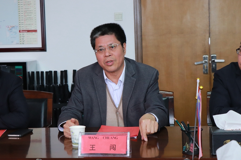 欢迎会上,王闯副院长代表学院欢迎尤玆里查姆 •尤萨一行五人来院。他提到,学院和马来西亚吉隆坡建设大学结缘于第三届中国—东盟轨道交通教育培训联盟年会,值45周年校庆之喜,特邀请马来西亚吉隆坡建设大学来访,以增进双方互信,推动进一步合作。他简要介绍了学院历史、专业设置、办学特色及国际交流与合作概况等方面的基本情况。他表示,学院始终坚持大力推动国际交流与合作的发展理念,通过师生互访、合作办学、人才培养、学分互认等形式,积极引进国外优质教育资源和先进的教育方法,提升学院国际化办学水平,开阔学生国际化视野。