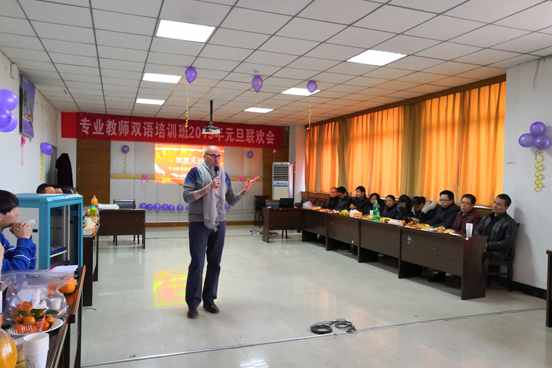 联欢会开始前,王闯发表了热情洋溢的致辞,充分肯定了培训班师生本学期所取得的成绩,并与大家探讨了2019年培训班新的授课模式,同时表达了对新的一年期许与祝福。随后,两位外籍教师Mike和Judd分别发言,表达了对学院生活和工作的喜爱,并为大家献上真挚的新年祝福。