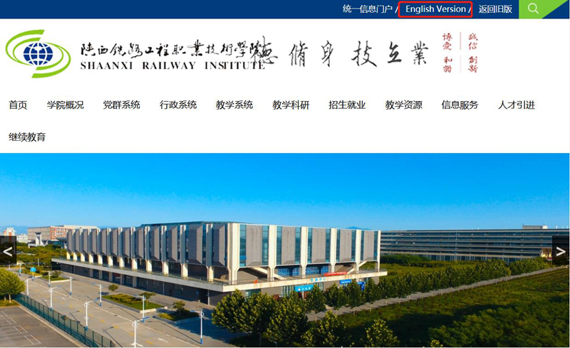 英文网站是展示学院综合办学实力和水平、推介学院形象以及加强对外合作交流的重要窗口和平台。2019年12月29日,陕铁院英文网站上线试运行,网络用户可从学院官网English Version点击进入,或访问网址:http://english.sxri.net/进行浏览。