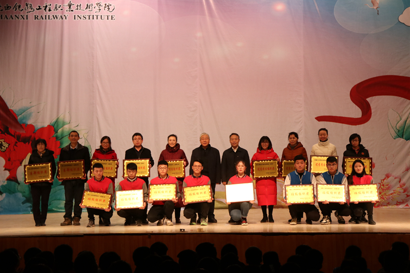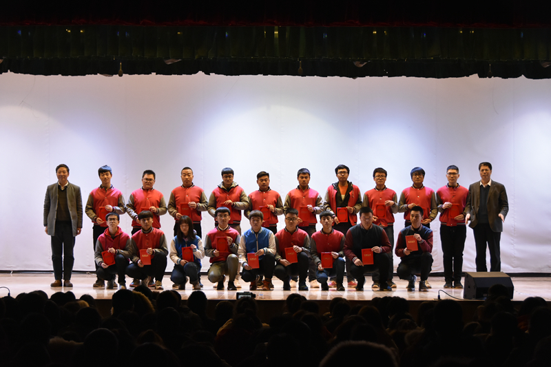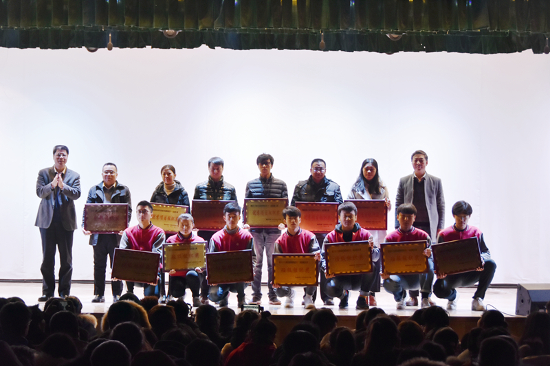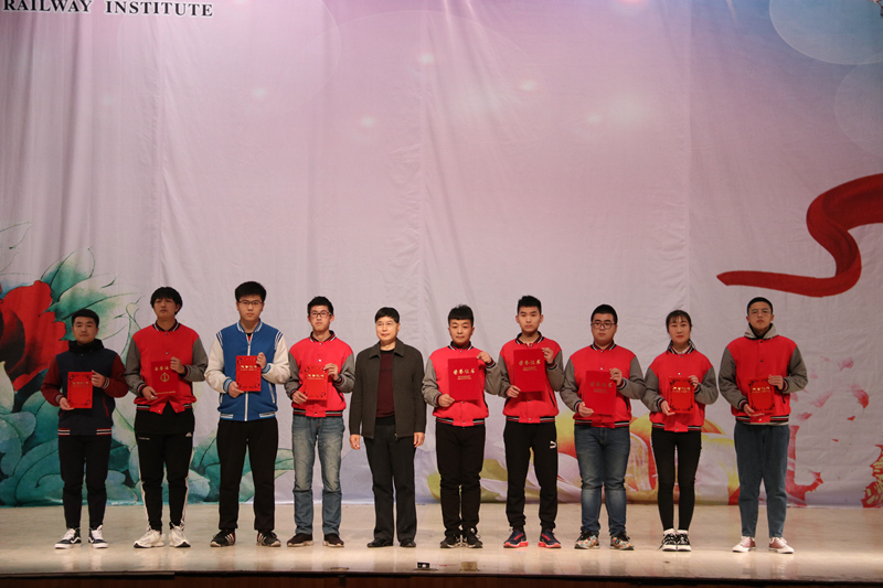 晚会中,学院领导为全国各类技能大赛获奖、学院第十三届技能大赛及首届课外科技作品竞赛获奖代表颁奖。(张楠/文 杨光 学生记者 党旭谦 安贾伟 赵湘东/图)