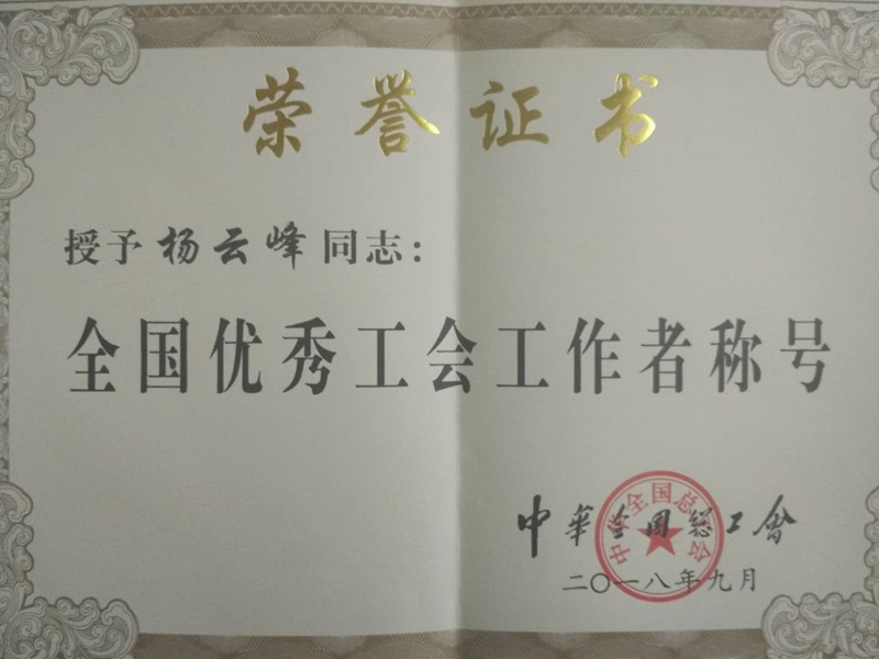 杨云峰副书记被中华全国总工会授予“全国优秀工会工作者”称号