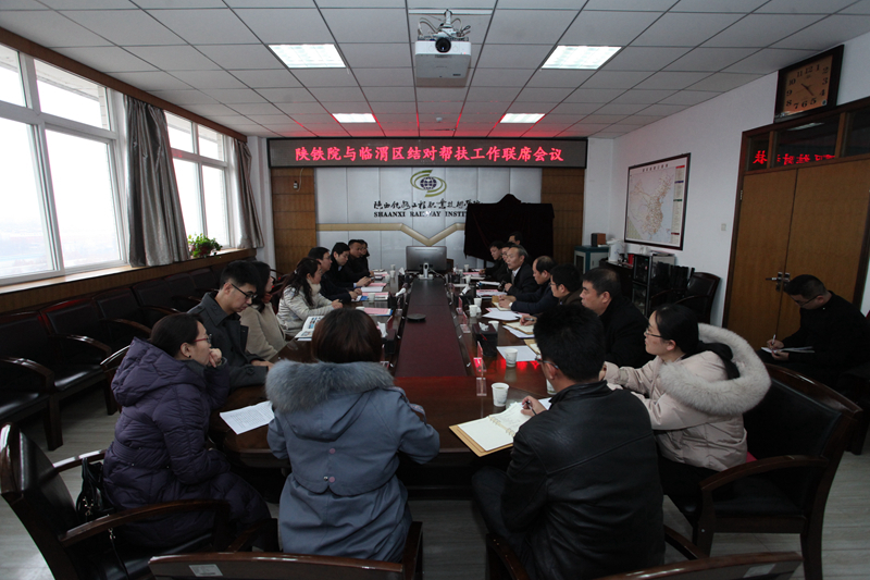 1月9日上午,陕铁院与临渭区结对帮扶工作联席会议在临渭校区十一楼会议室举行。临渭区交通局书记杨建才、科技局副局长杨琳、教育局副局长李学斌、教育局成教办主任关斌、学院党委副书记车绪武,党政办、扶贫办、科技处、后勤保障处、道桥工程系、餐饮中心等部门负责人参加会议。会议由学院党政办、扶贫办主任段东旭主持。