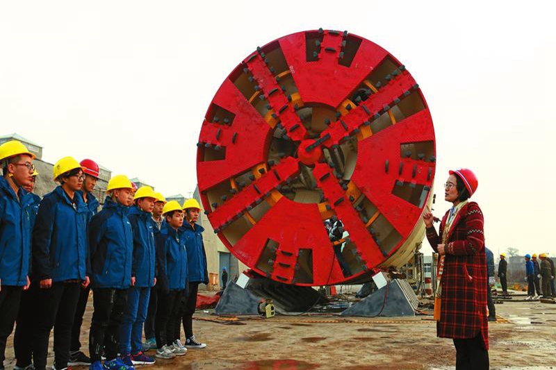毛红梅教授向学生介绍盾构机的相关知识