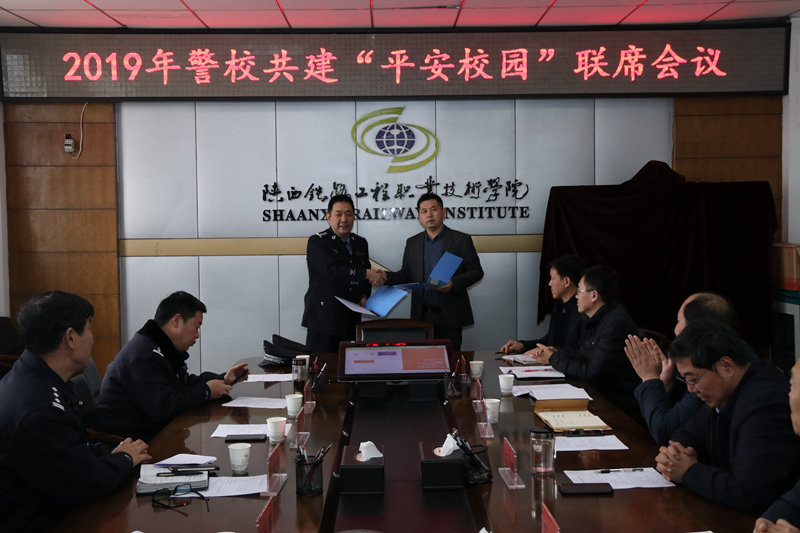 会上,李晓飞汇报了2018年学院校园安全稳定工作开展情况,并分别与站南派出所、白杨派出所所长签订了2019年警校共建“平安校园”协议书。