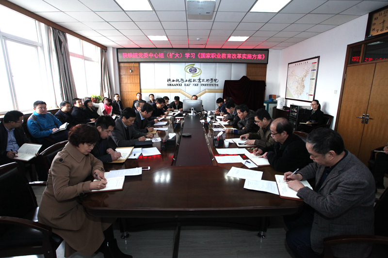 3月8日上午,学院党委中心组在临渭校区11楼会议室召开扩大会议,对《国家职业教育改革实施方案》进行了学习。学院党委委员,宣传部、组织部、党政办、纪委办、学工部、思政部、基础课部、团委、安保处、人事处、教师发展中心等部门负责人,高教研究所所长、副所长,各系主任、各总支书记参加本次会议,会议由党委书记王晖主持。