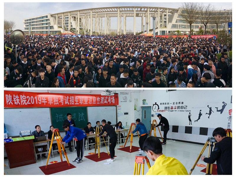图为陕西铁路工程职业技术学院单独考试招生考生报名和参加职业适应性测试的场景。据了解,陕铁院单独考试招生已经走过了9个年头,招录人数与报名人数依旧呈现出“双高”态势,今年共吸引了来自全省11个地市5200余人报考。为了落实国家高职院校扩招100万人的计划,学院的招生计划也将在原公布的2700人的基础上大幅增加。杨光 摄影报道