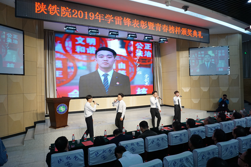 4月3日下午,陕铁院2019年“汇聚青春梦想,彰显榜样力量”学雷锋表彰暨青春榜样颁奖典礼在高新校区博爱厅举行,临渭校区学术报告厅进行实时现场直播。学院党委书记王晖,院长王津,党委副书记车绪武,党委副书记、纪委书记杨云峰,副院长焦胜军、李林军,2018年度“五类十佳”青春榜样学生家长,学院各部门,各系部师生代表共500余人参加了颁奖典礼。