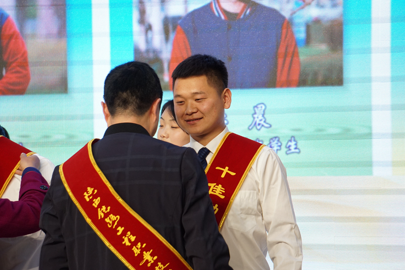 “五类十佳”青春榜样颁奖环节将整个颁奖典礼推向高潮,很多家长走上主席台热情拥抱孩子,热泪盈眶,场面感染了在场的每一位师生。王晖、王津及青春榜样家长分别为受表彰的青春榜样学生颁发了荣誉证书。青春榜样代表、铁成铁工3171王龙慈发言,她表示将继续严格要求自己,争取更大的荣誉用青春榜样影响更多的人,带动周围的同学共同进步。